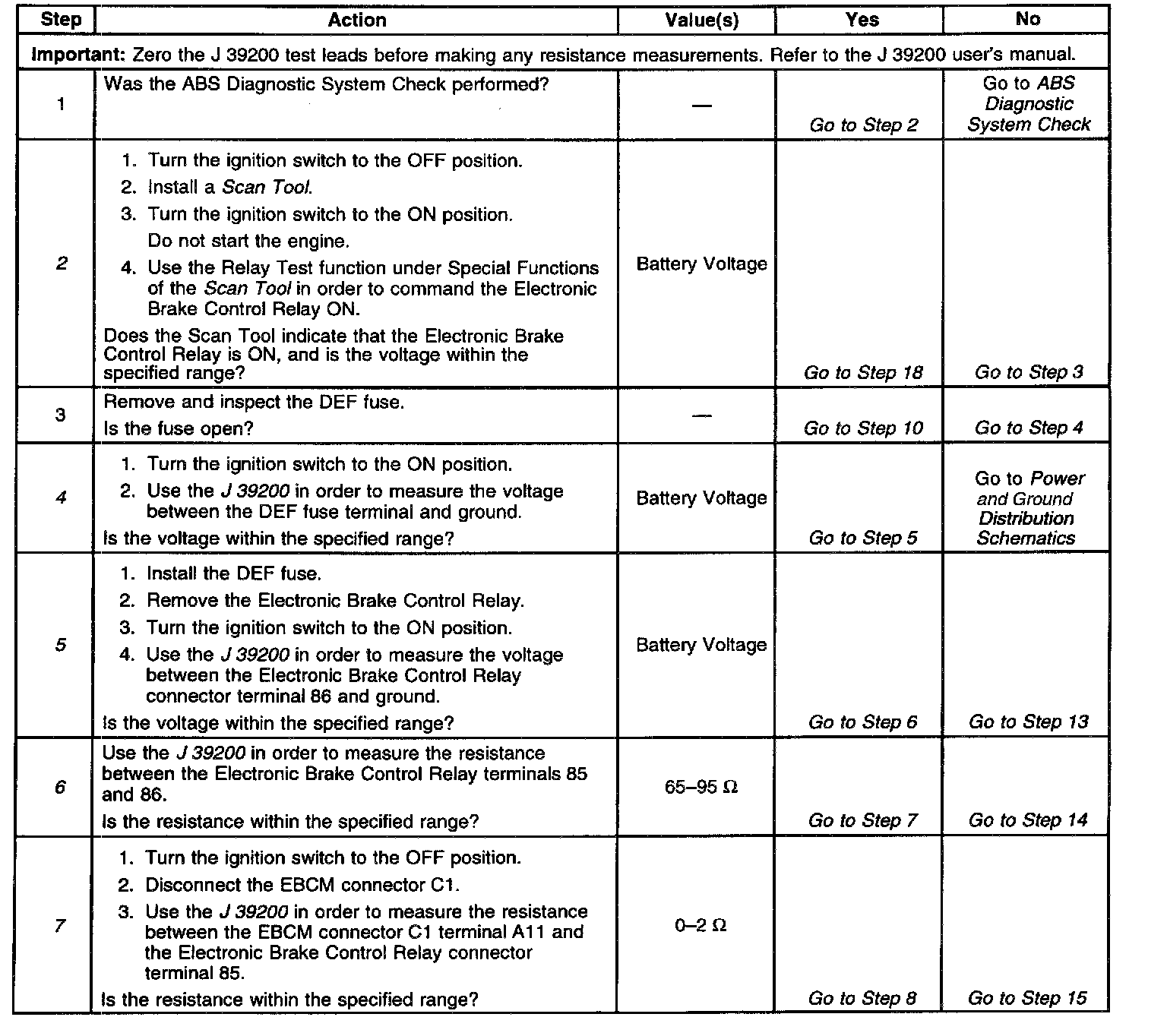 7. This test checks for an open or high resistance in the electronic brake control relay control circuit between the electronic brake control relay and the EBCM.