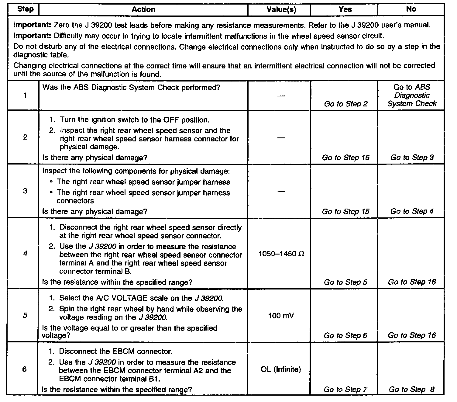 6. This test checks for a short between the wheel speed sensor high and low circuits.