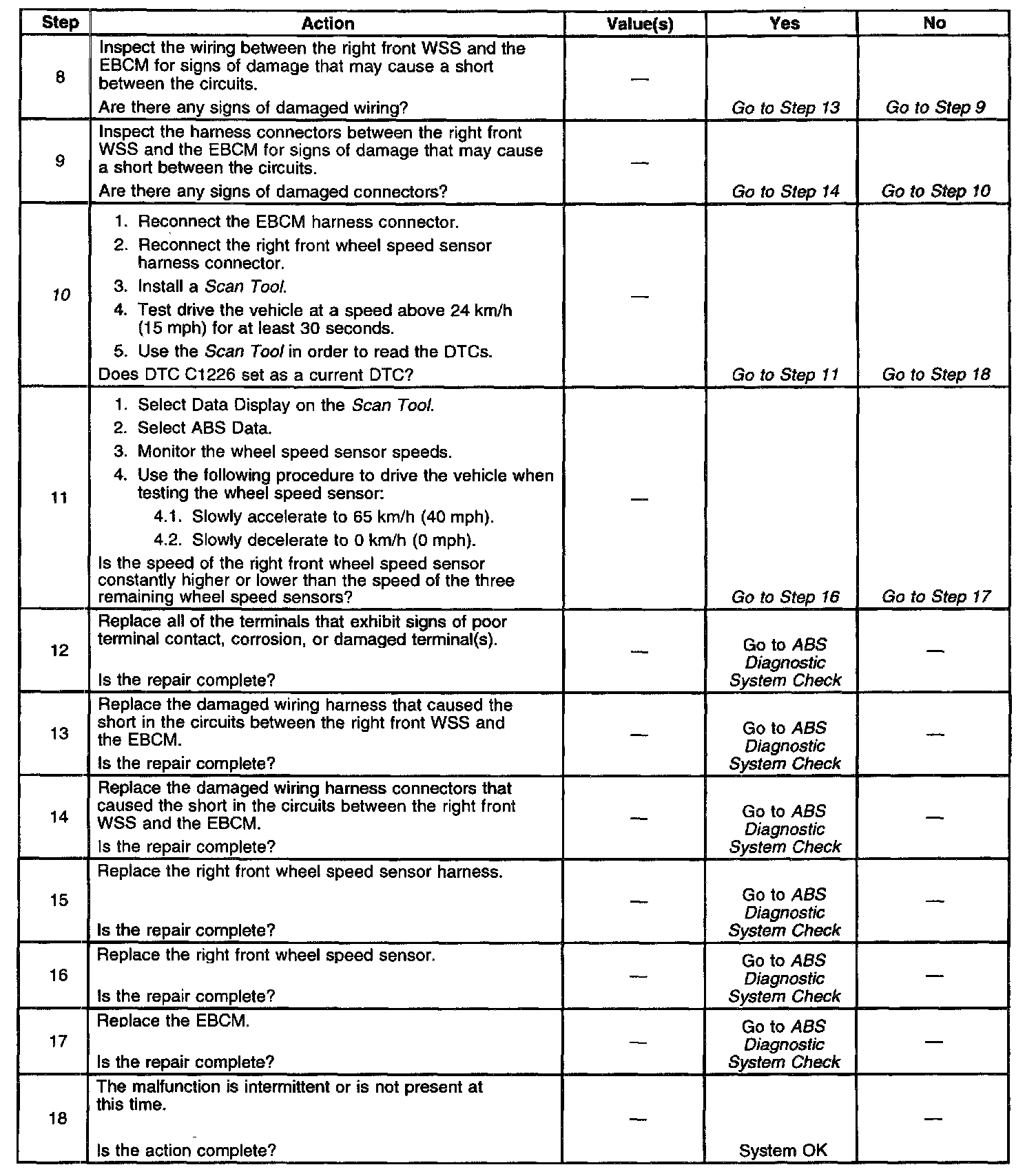 6. This test checks for a short between the wheel speed sensor high and low circuits.