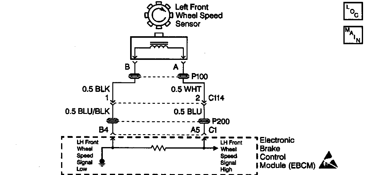 ^ Faulty electrical circuits (open/high resistance, short to voltage or ground) between the LF wheel speed sensor and the Electronic Brake Control Module (EBCM)