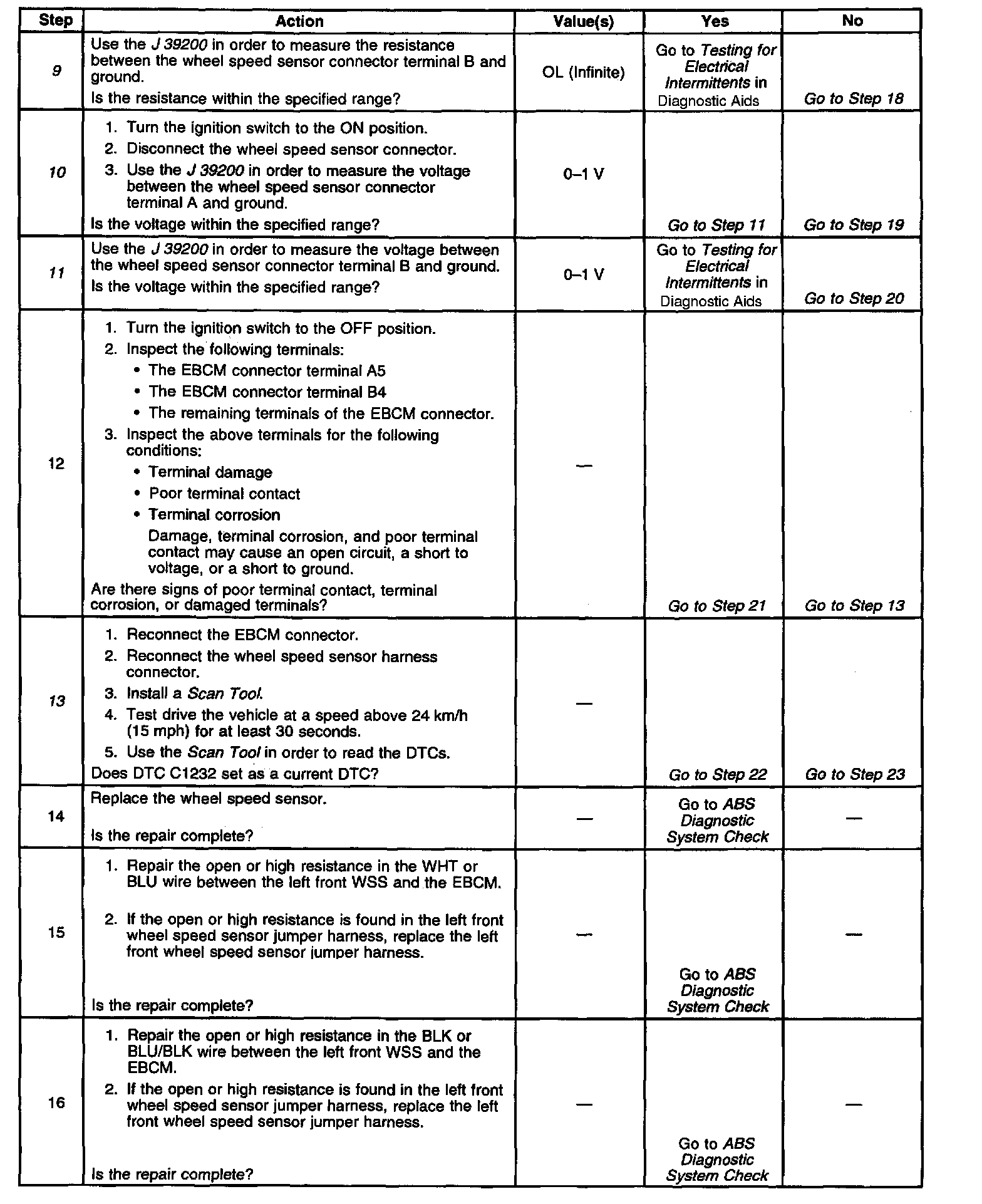 DTC C1232 LF WHEEL SPEED CIRCUIT OPEN OR SHORTED