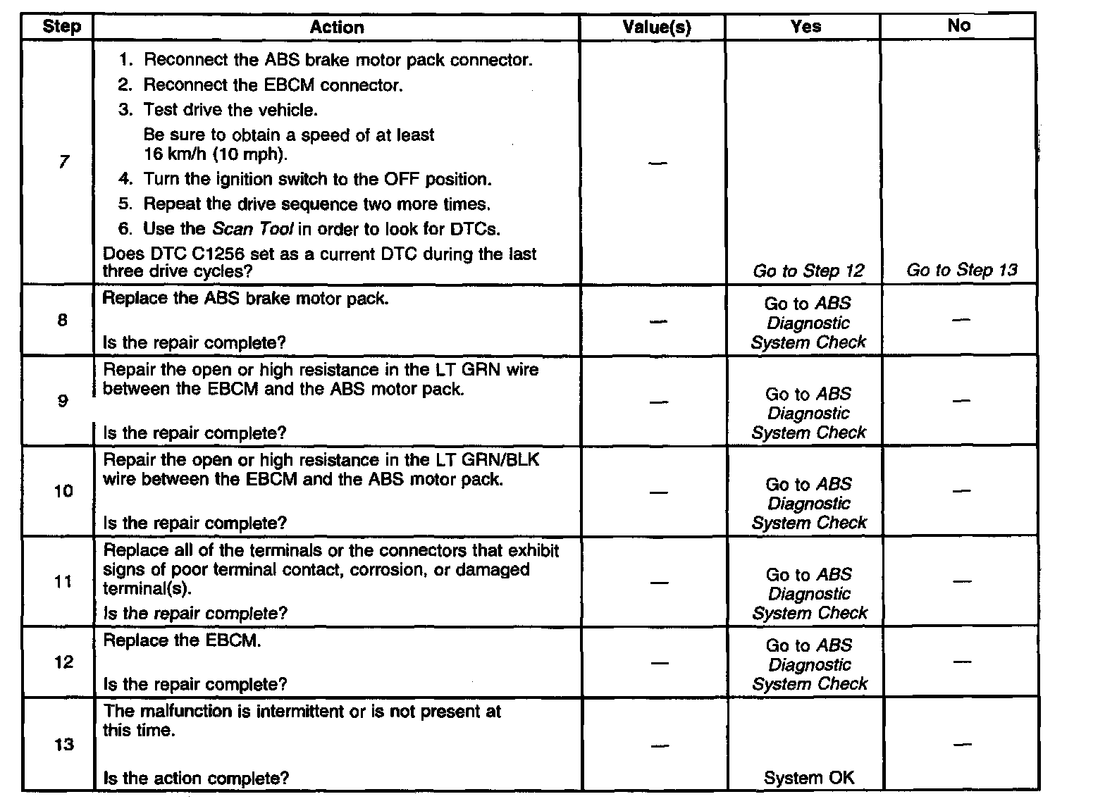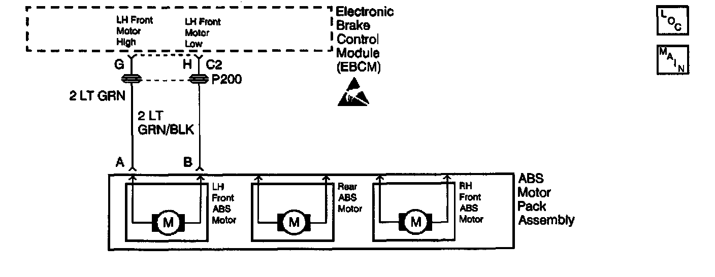 ^ A malfunction exists if the Electronic Brake Control Module (EBCM) detects an out of range voltage on either of the left front ABS motor circuits. The out of range voltage on either circuit indicates an open circuit exists.