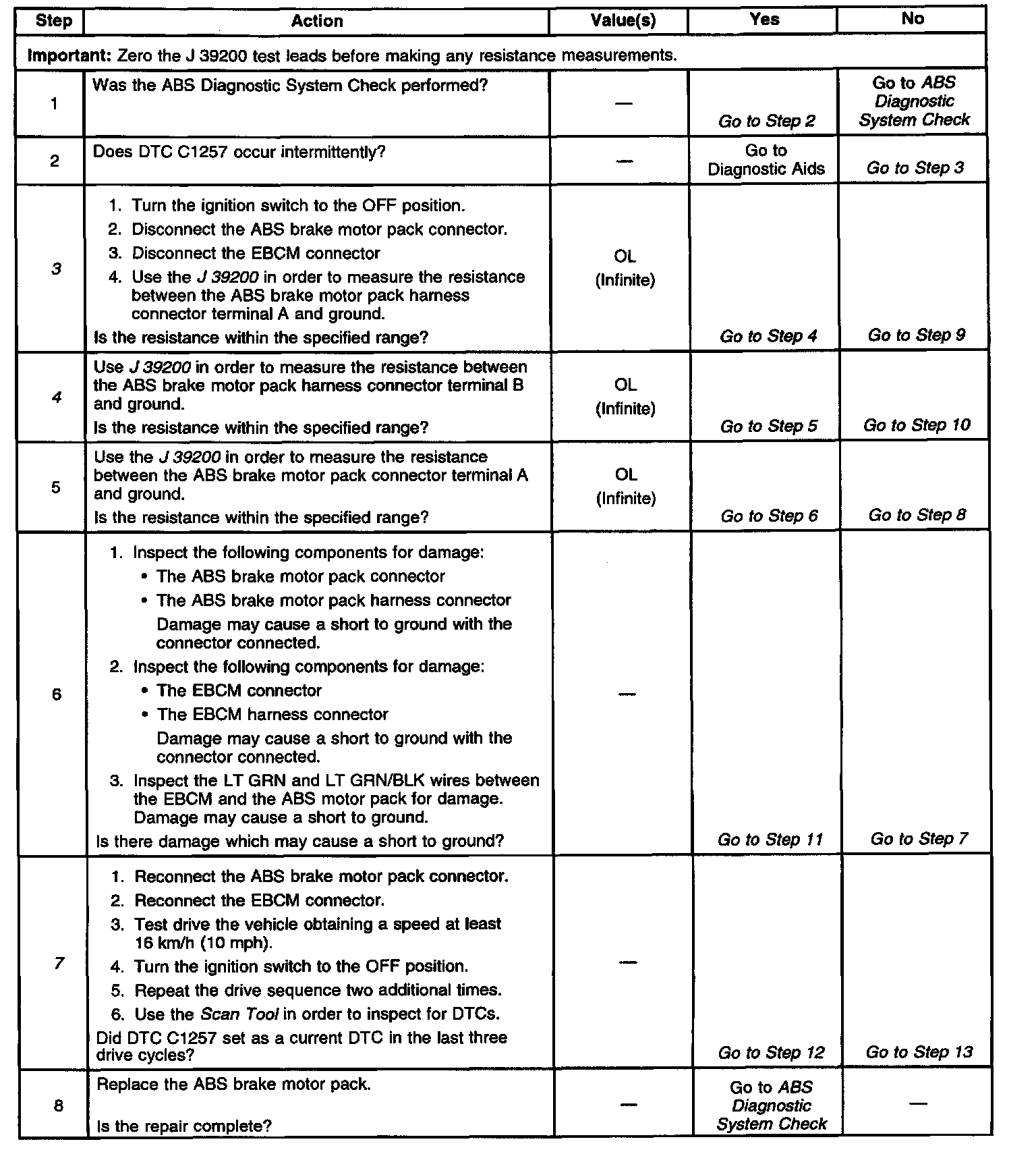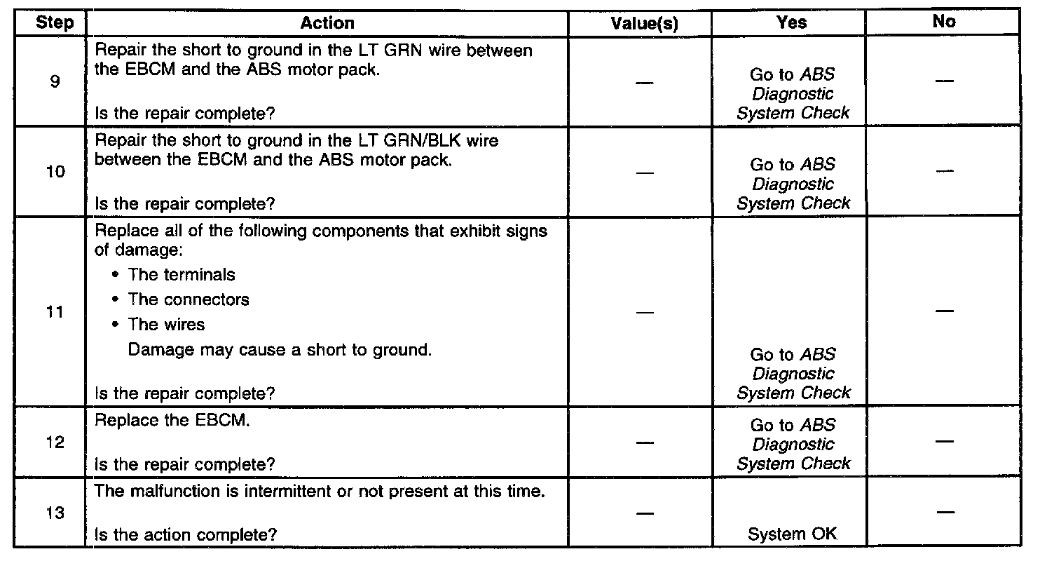 ^ A malfunction exists if the Electronic Brake Control Module (EBCM) detects an out of range voltage on either of the left front ABS motor circuits.