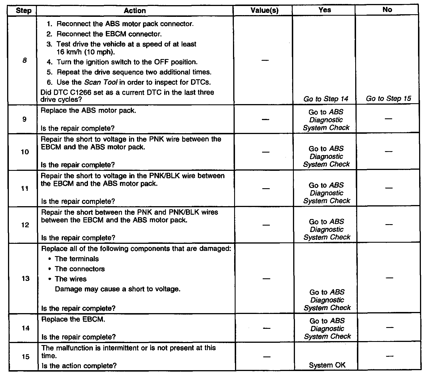 ^ Diagnostic Trouble Code (DTC) C1266 can set only when the ABS motor is commanded off.