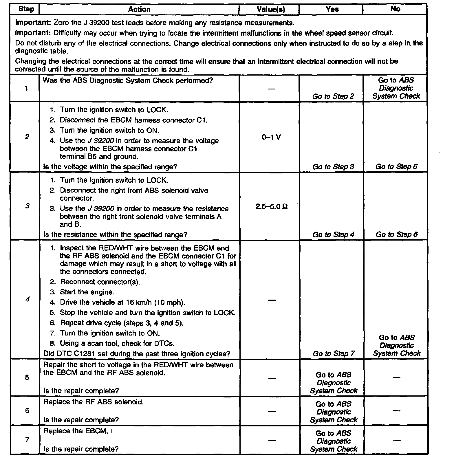 Diagnostic Trouble Code (DTC) C1281 identifies a solenoid that cannot be energized due to a short to voltage in the solenoid circuitry. The malfunction can affect ABS operation since the flow of brake fluid to the wheel cylinder cannot be stopped. The unstoppable flow of brake fluid to the wheel cylinder makes ABS operation for that channel impossible.