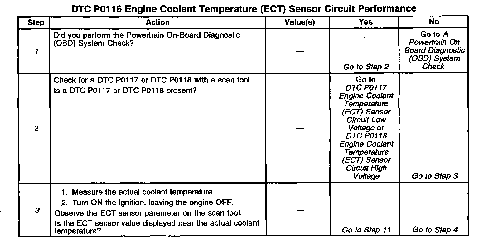 3. This step checks for a faulty ECT sensor or ECT sensor circuit.