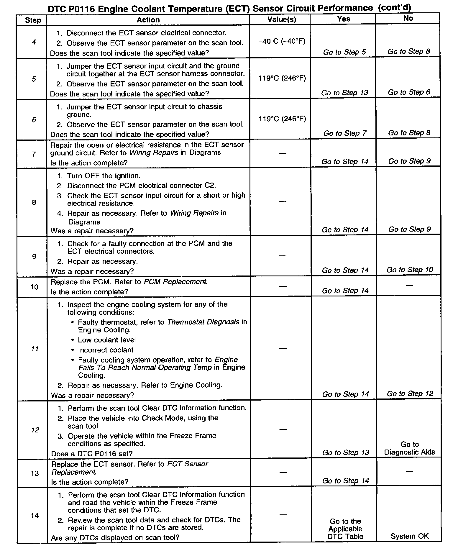 ^ Use the Temperature vs Resistance table in order to evaluate the possibility of a shifted (incorrectly calibrated) ECT sensor. A shifted sensor could result in a DTC P0116. Refer to Temperature vs Resistance.