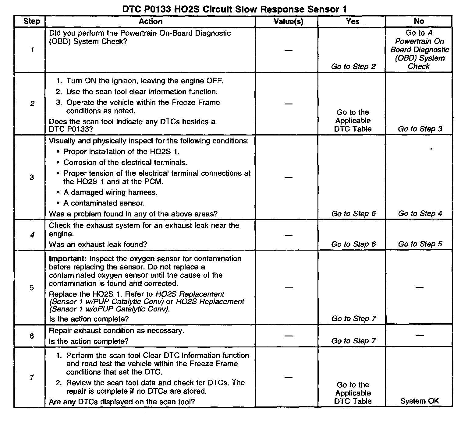 If a DTC P0133 cannot be duplicated, the information included in the Freeze Frame data can be useful in determining vehicle operating conditions when the DTC was first set.