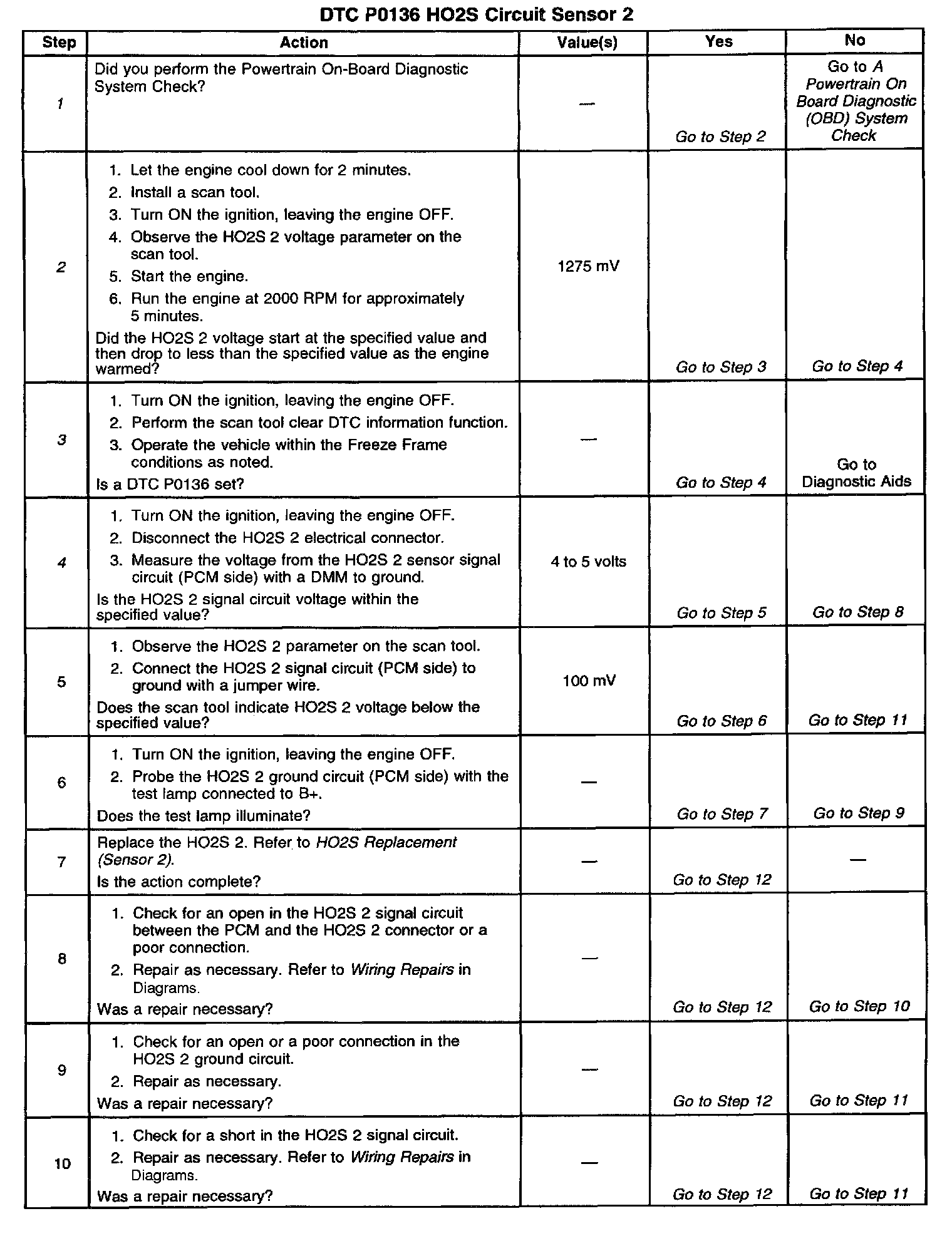 ^ A shorted heated oxygen sensor (HO2S). An HO2S 2 that is shorted to ground or voltage can set a DTC P0136. Water contamination of the HO2S 2 can cause a short to occur in the sensor circuitry. A DTC P0136 that occurs more frequently when driving through standing water or when operating the vehicle in wet driving conditions can indicate a water intrusion. Replace the HO2S 2 if it is adversely affected by moisture.