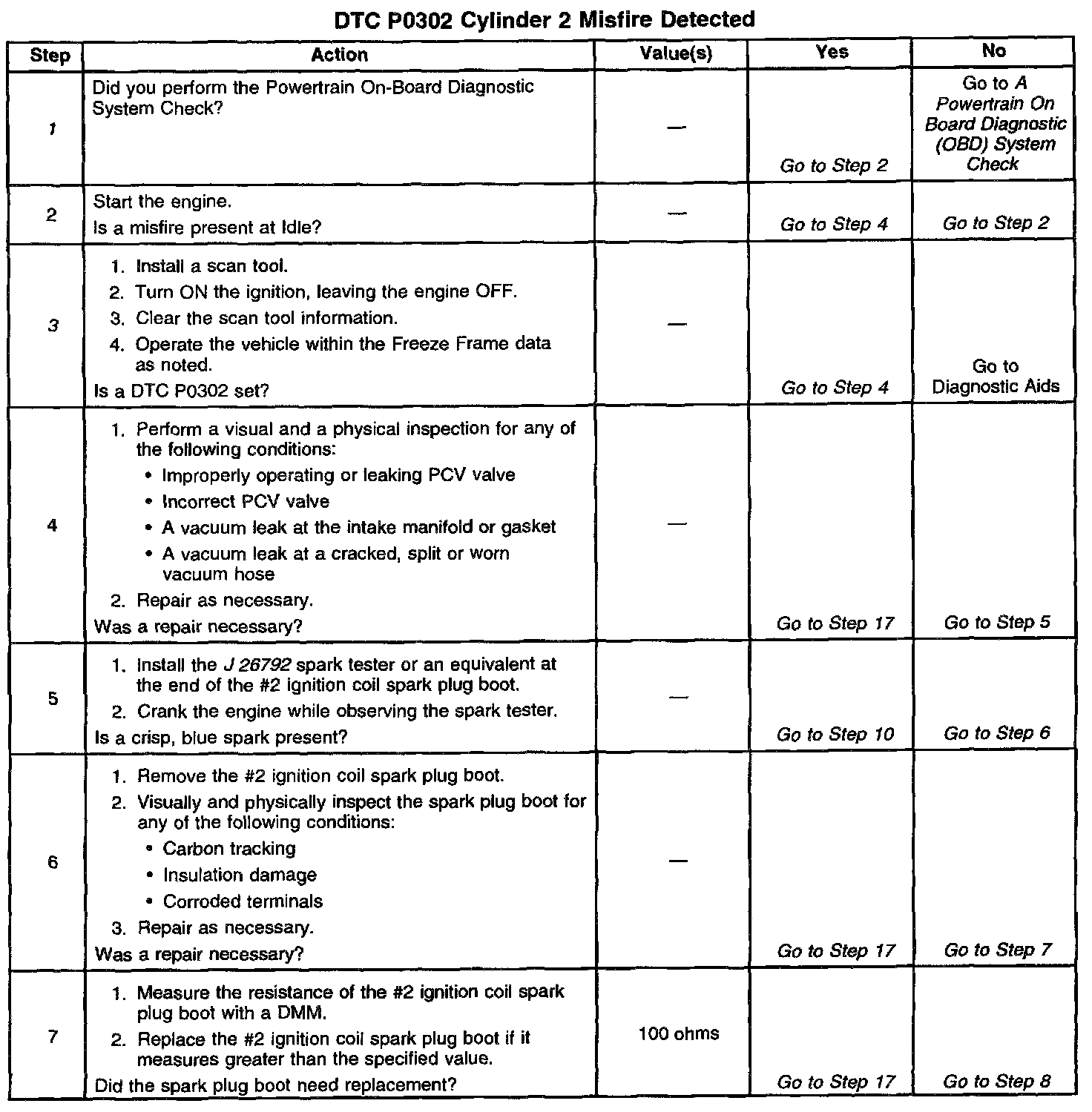 ^ A fuel injector malfunction may cause a DTC P0302 to set. Check the performance of the fuel injectors. Refer to Fuel Inj Coil Test - ECT Between 10-35 Degrees C and Fuel Injector Balance Test (SFI). Component Tests and General Diagnostics