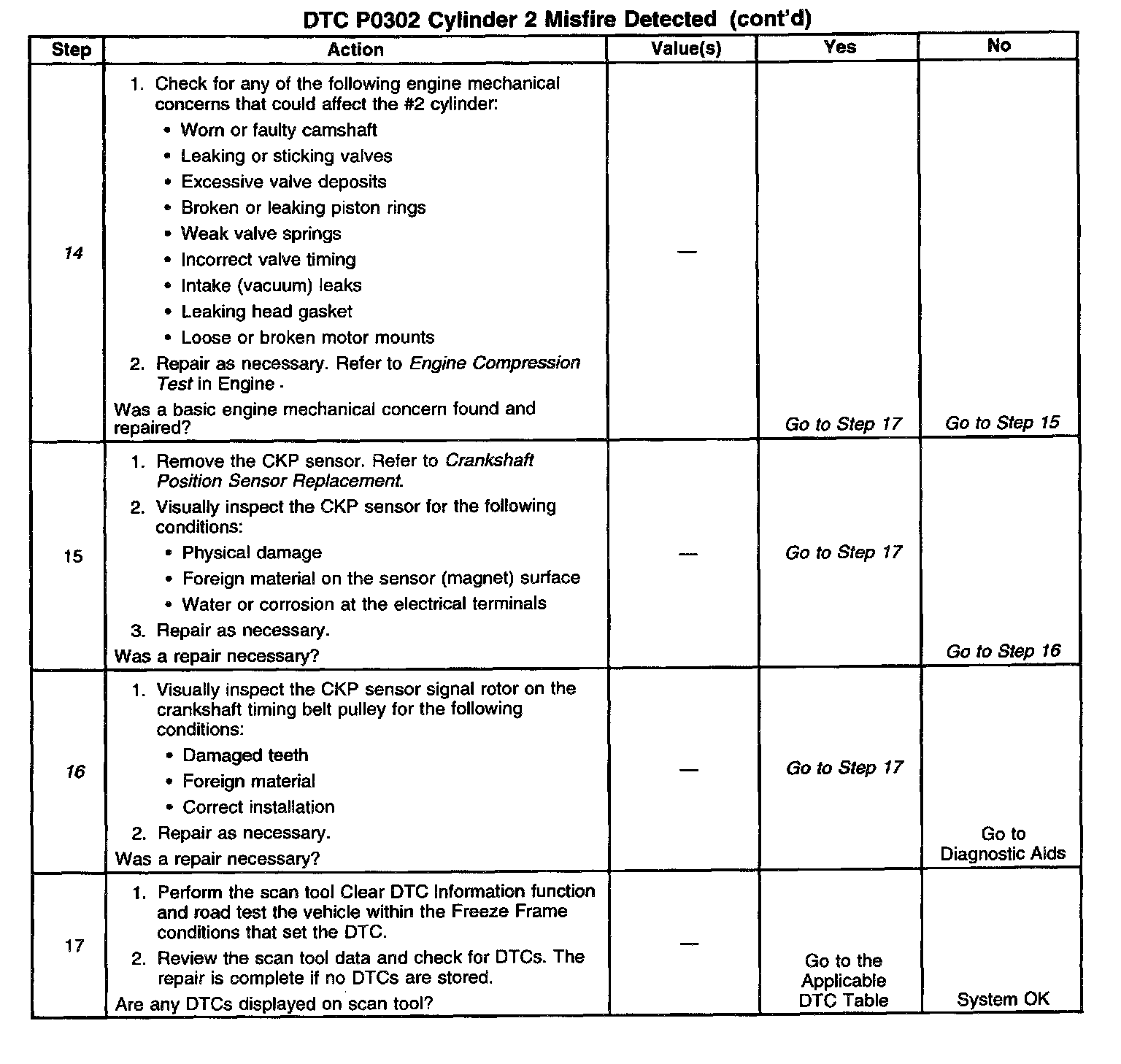 14. This step checks for a mechanical fault as the cause of the misfire condition. Low engine compression and improper valve lash may also cause a rough idling condition.