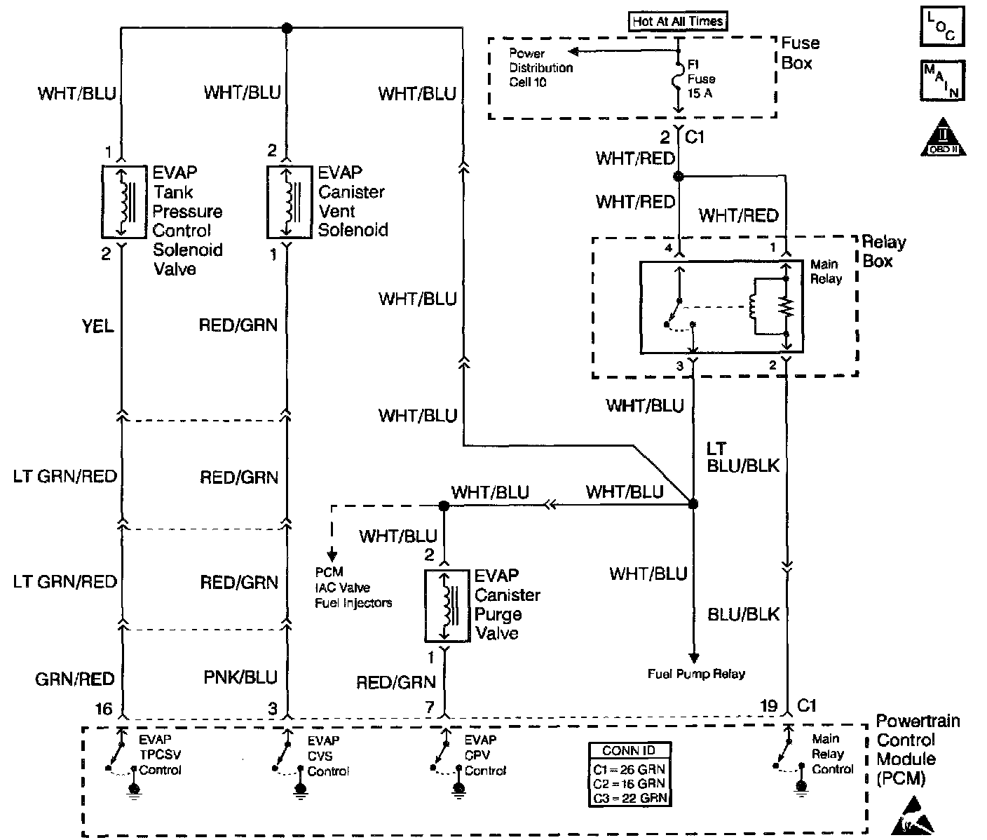 16. A short to ground will keep the EVAP tank pressure control solenoid valve open and cause the system to fail. Inspect the control circuit wiring and the PCM for a short to ground and repair as necessary. The EVAP tank pressure control solenoid valve output control is disabled by the PCM when any DTCs are stored, when engine speed is indicated, and until the engine has reached a normal operating temperature of at least 80°C (176°F).
