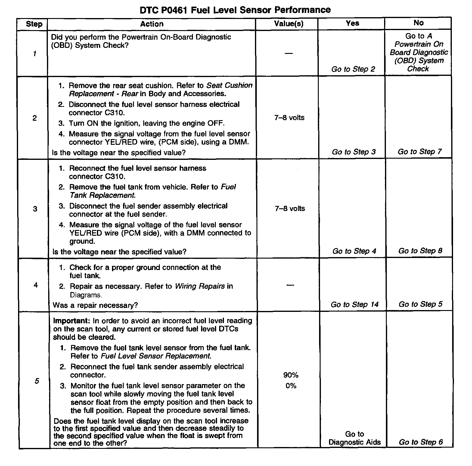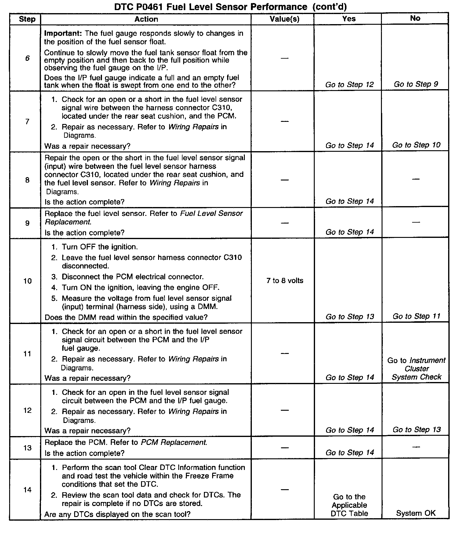 6. This step checks for a faulty fuel level sensor.