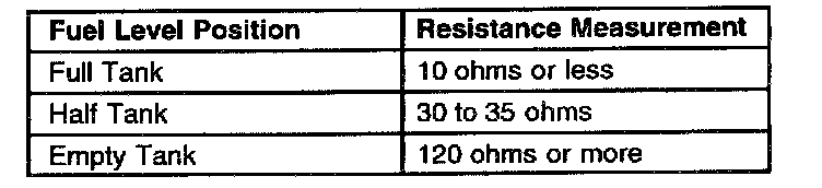 Check the resistance of the fuel level sensor at the following positions: