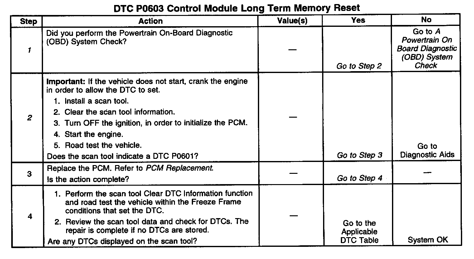 2. This step determines if the fault is present. Replace the PCM if this DTC sets again.