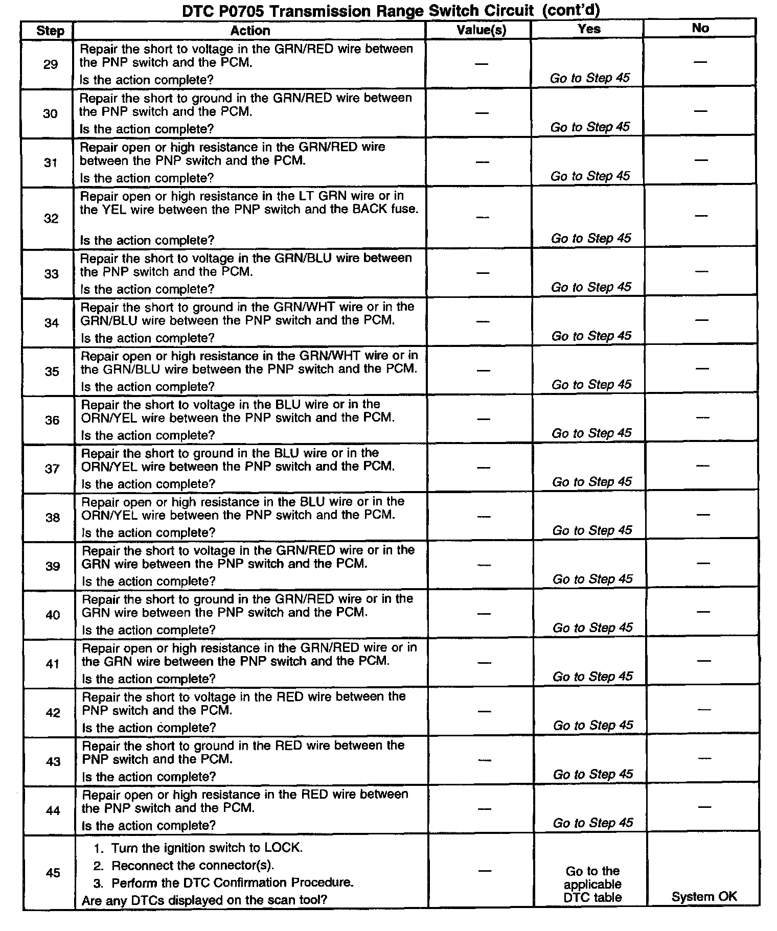 Perform the following steps if DTC P0705 cannot be duplicated: