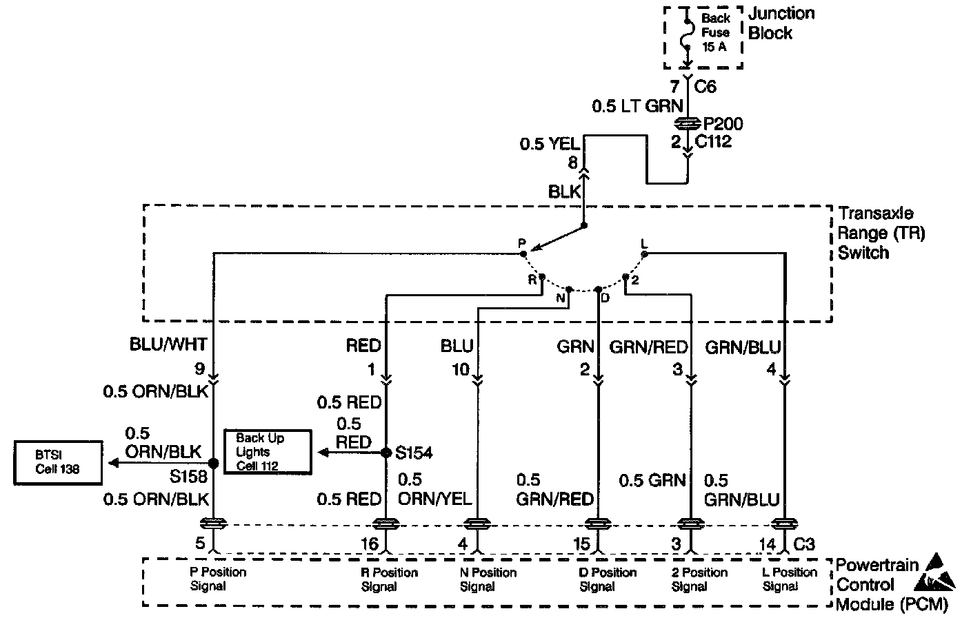 The transaxle range switch sends gear position signals to the Powertrain Control Module (PCM) according to the manual selector range. The PCM uses this information in order to manage the transaxle operation.