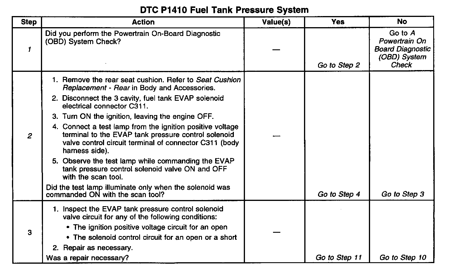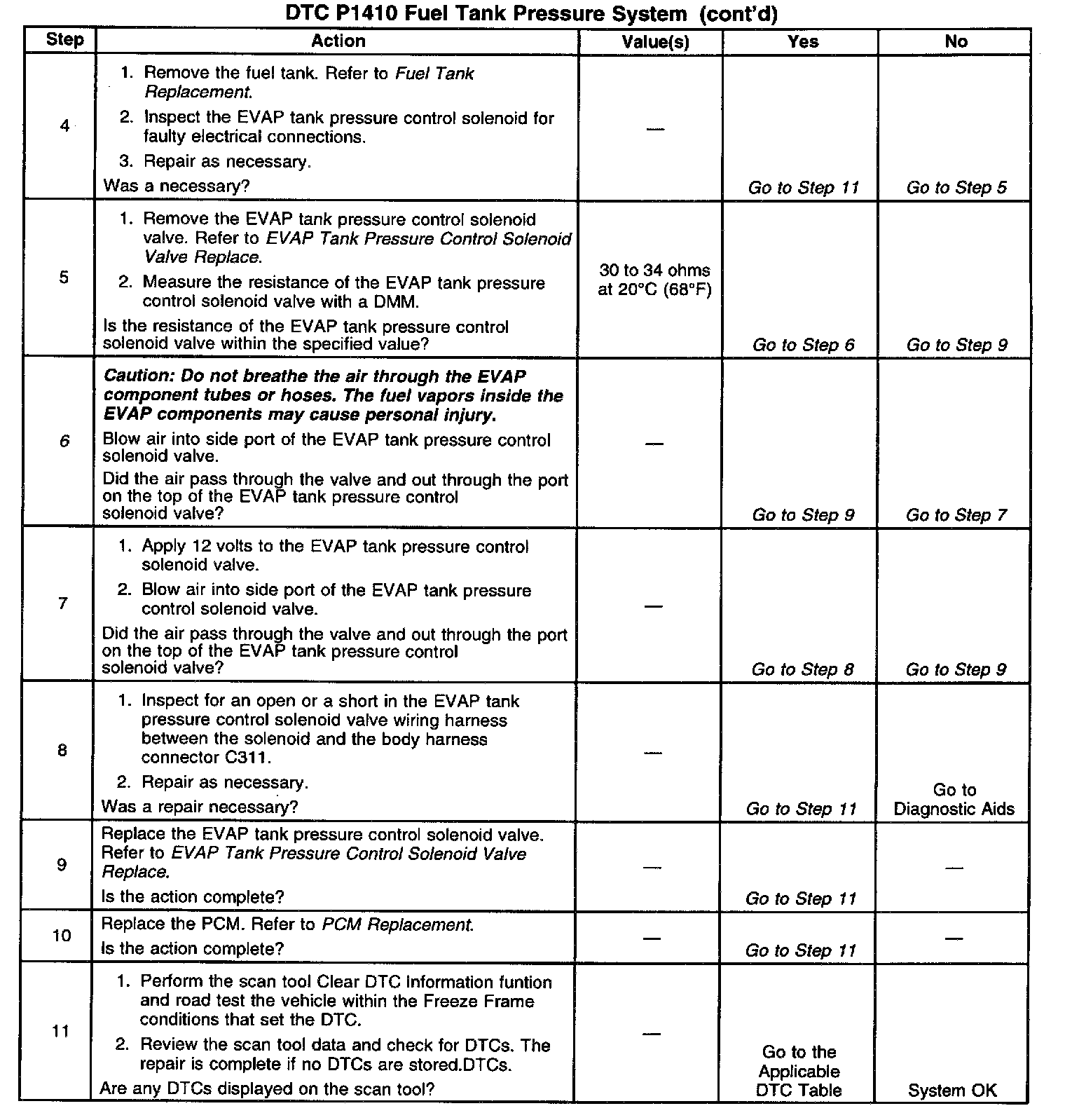 6. This step checks for a stuck open or leaking EVAP tank pressure control solenoid valve.
