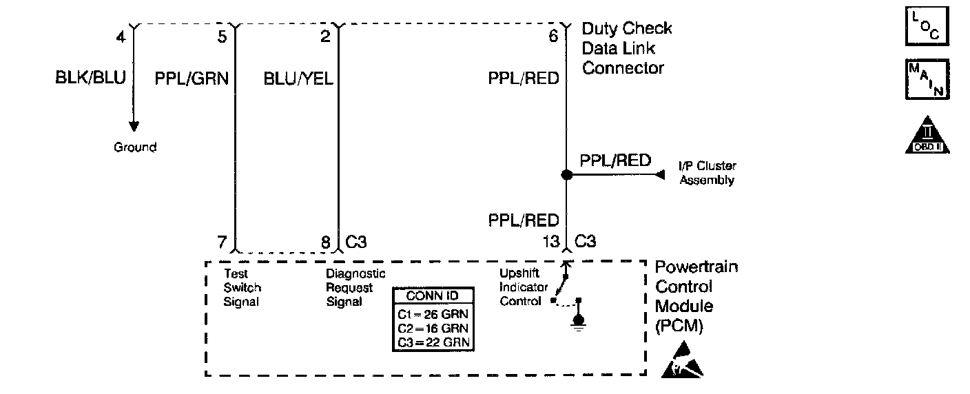 Check for a damaged wiring harness. Inspect the wiring harness for damage that may cause a short to ground. With the engine running, wiggle the wiring harness to the duty check data link connector while monitoring the Spark Advance Adjust Test Switch parameter on a scan tool for an ON display, indicating that the harness is shorting to ground.