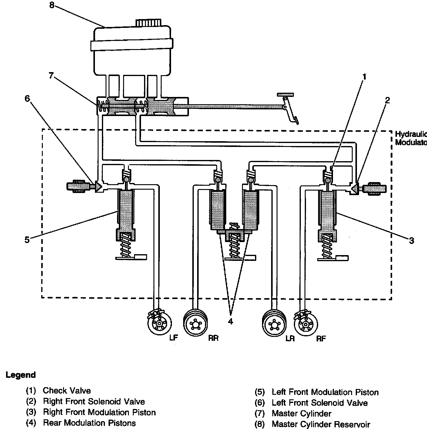 If any wheel(s) begin to approach lock-up, the EBCM will control the following components in order to control the brake pressure to the affected wheel(s):