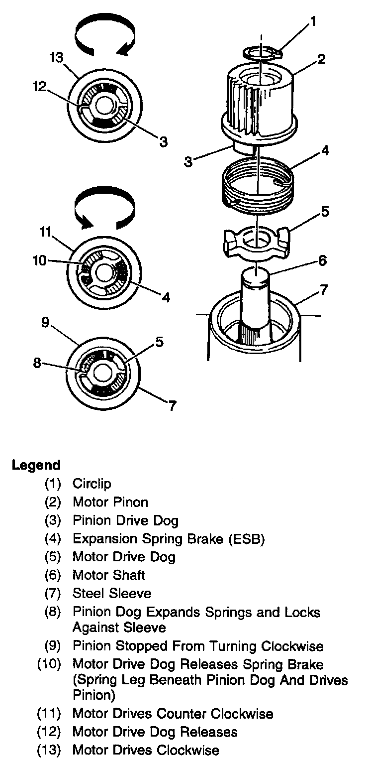 An ESB is a spring that is retained in a housing at a close tolerance. One end of the spring touches the motor drive dog. The other end of the spring touches the pinion drive dog.