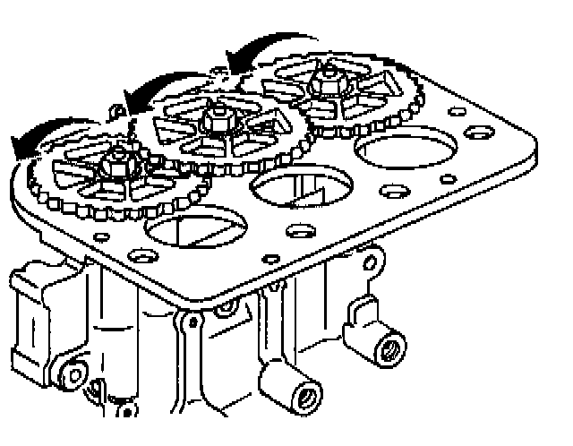 3. With either of the modulators positioned upside down, and the gears facing your, rotate each ABS brake modulator gear counterclockwise until movement stops.