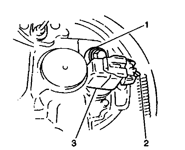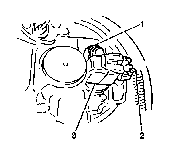 1. Install the rear wheel speed sensor (3) to the rear suspension knuckle.