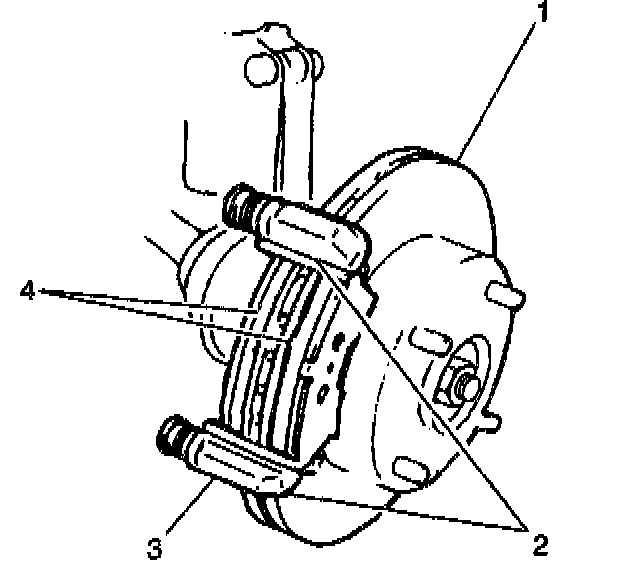 3. Lubricate the caliper pins (3) with silicone grease.
