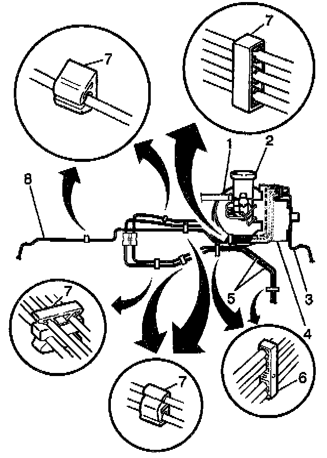 2. For vehicles without ABS, remove the pipe(s) to be replaced at the following locations (where applicable):