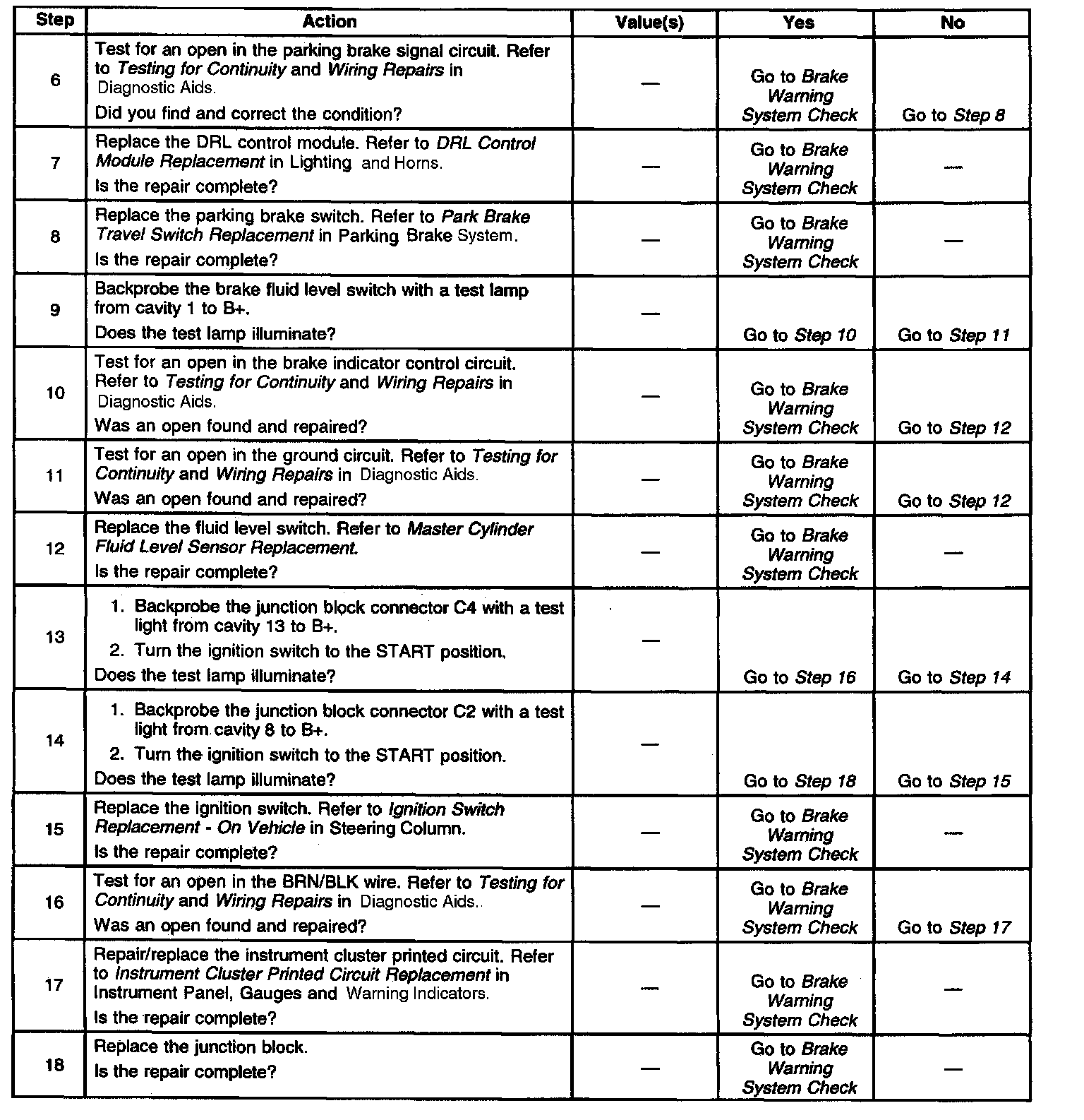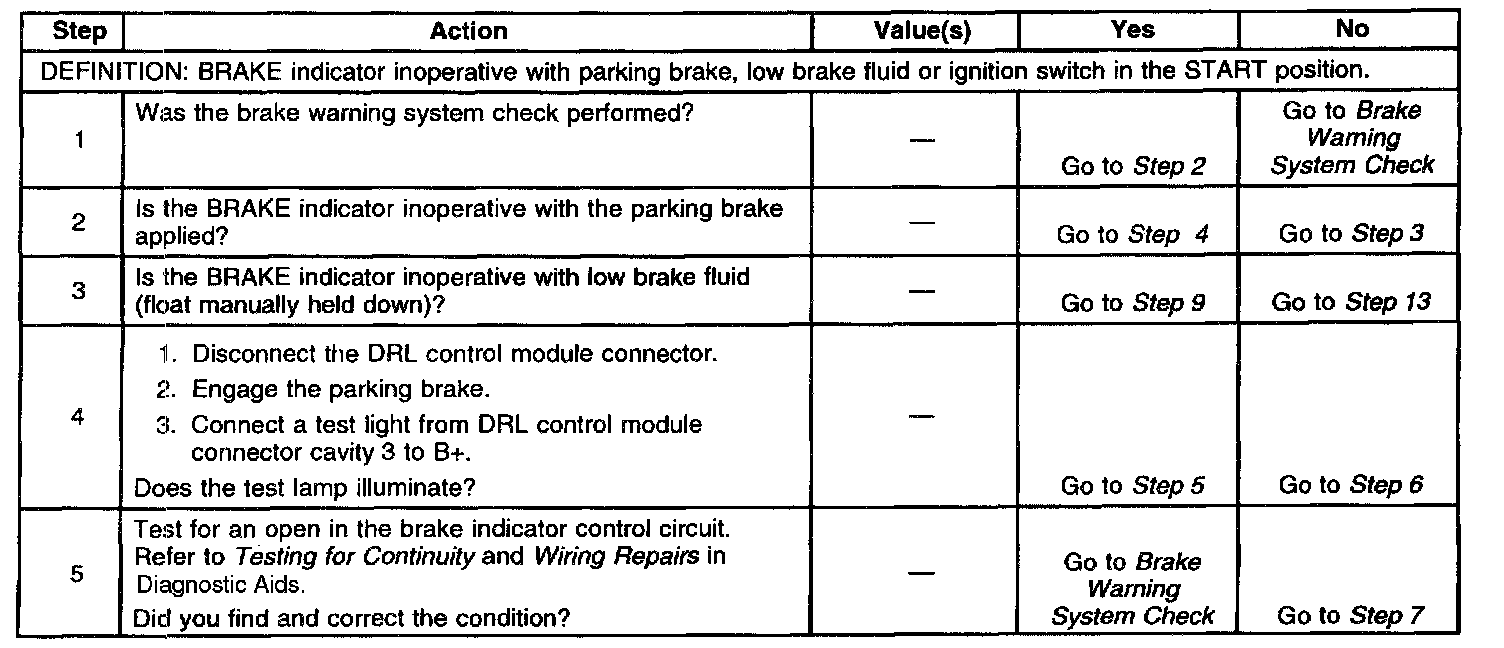 Brake Warning Indicator Inoperative