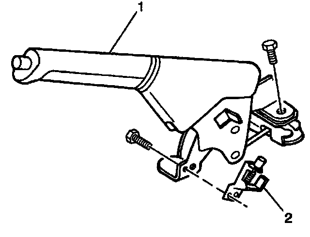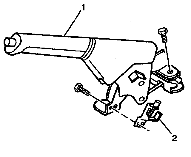 1. Install the parking brake switch (2) to the parking brake lever (1) assembly. Secure the switch with one screw.
