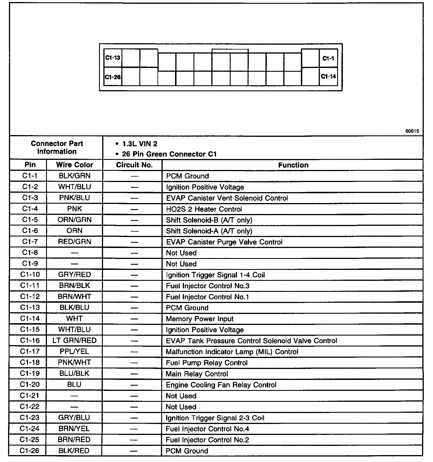 Metro L4-079 1.3L VIN 2 MFI