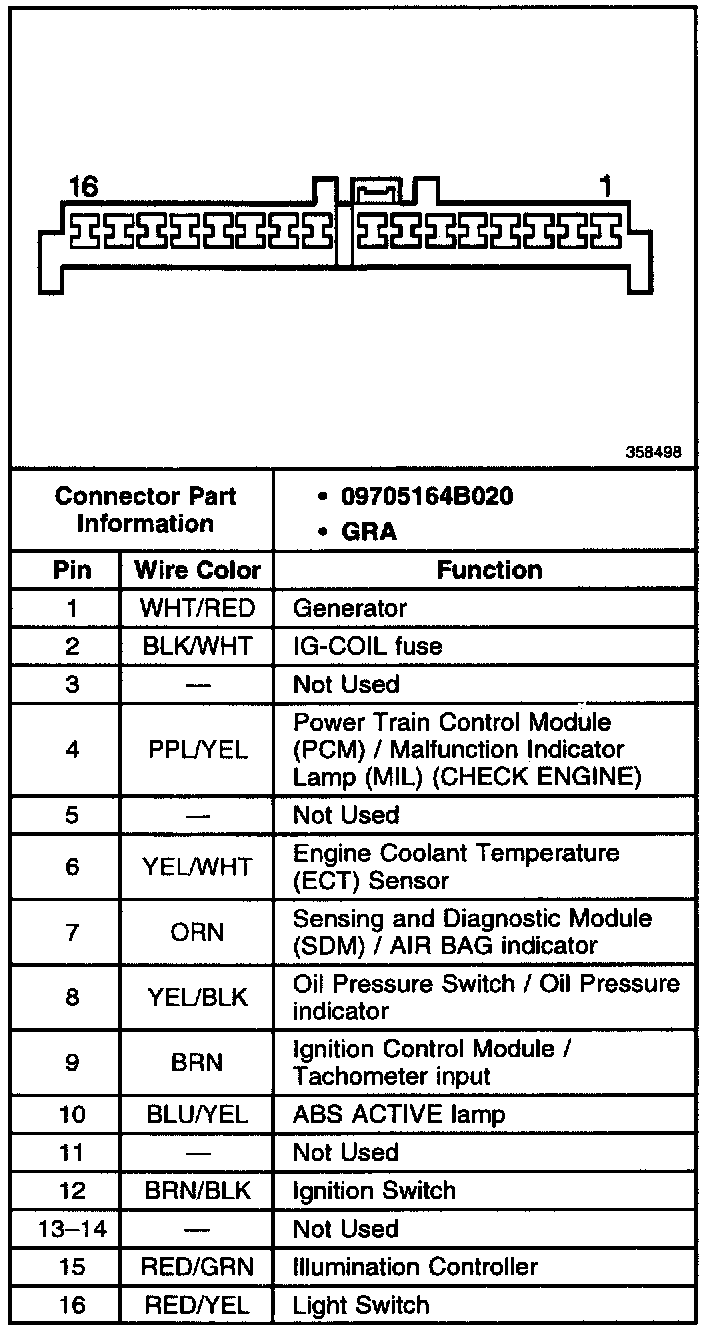 Instrument Panel Cluster Connector: C1: