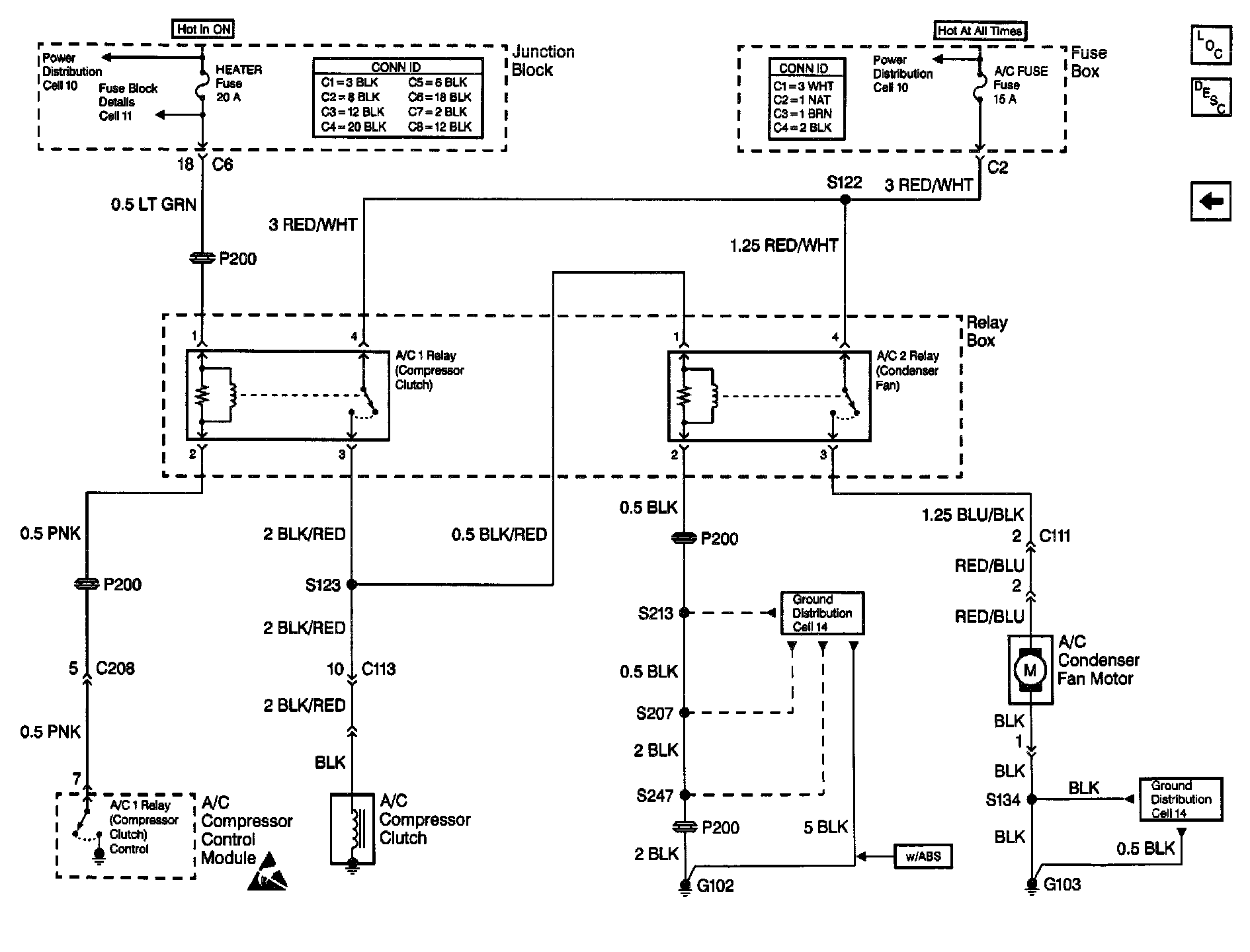 HVAC Compressor/Condenser Fan Control Schematics: A/C Relays, Condenser Fan And Compressor Clutch: