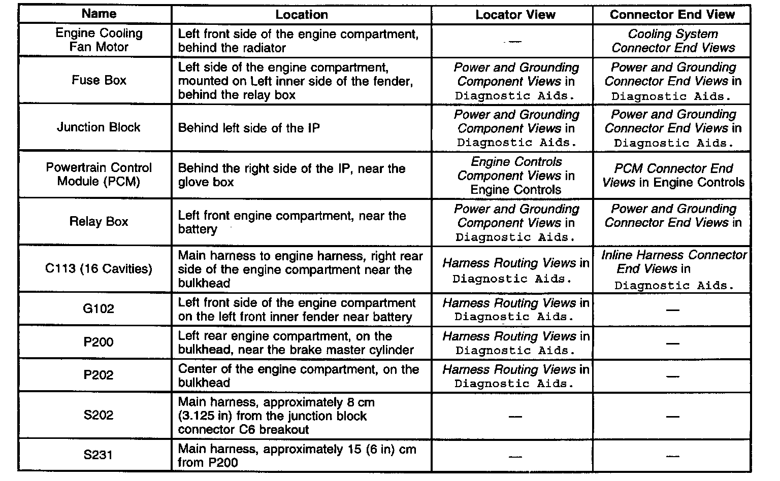 Cooling System: Locations