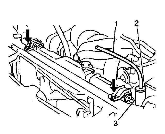10. Slide the coolant reservoir (2) out of the mounting bracket.