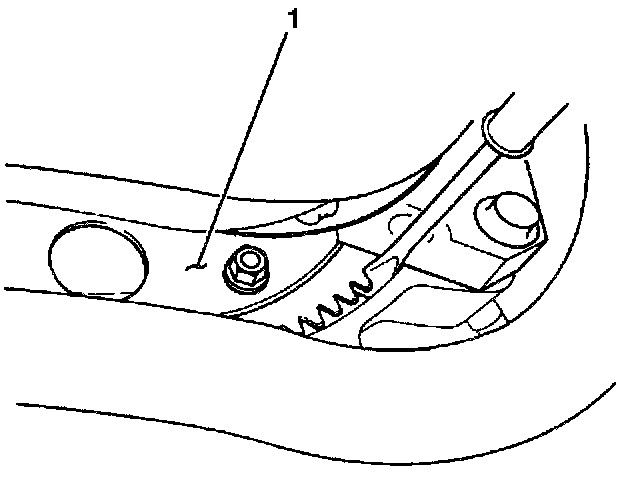 7. Apply GM P/N 12346004 or the equivalent to the thread portion of the short oil pump mounting bolt (1) indicated.