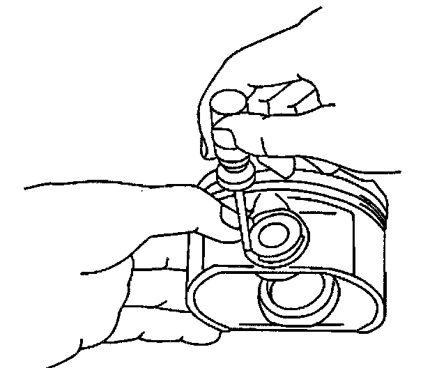 CAUTION: Handle the piston carefully. Worn piston rings are sharp and may cause bodily injury.1. Disassemble the piston rings. Use a suitable tool in order to expand the rings. The piston rings must not be reused.