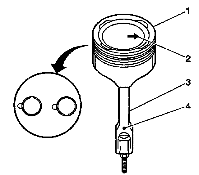 IMPORTANT: Install the piston onto the connecting rod with the marks oriented toward the front of the engine.