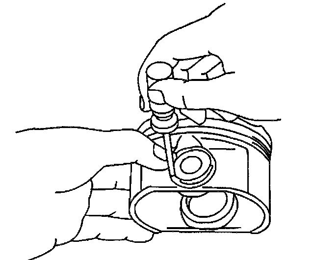 Push the piston pin into the piston pin bore by hand.