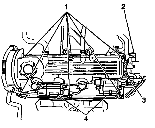 1. Install the new valve rocker arm cover gasket to the valve rocker arm cover (1).