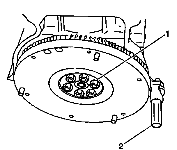2. Apply GM P/N 1234593 or equivalent to the flywheel retaining bolt threads.