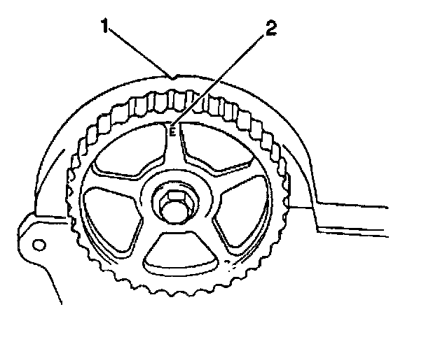3. Ensure that the upper timing marks (1 and 2) are aligned.