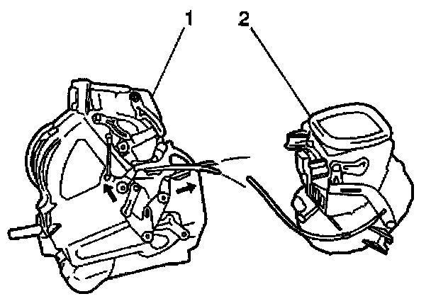 1. Disconnect the temperature control cable from the clip and the door at the heater case (1).