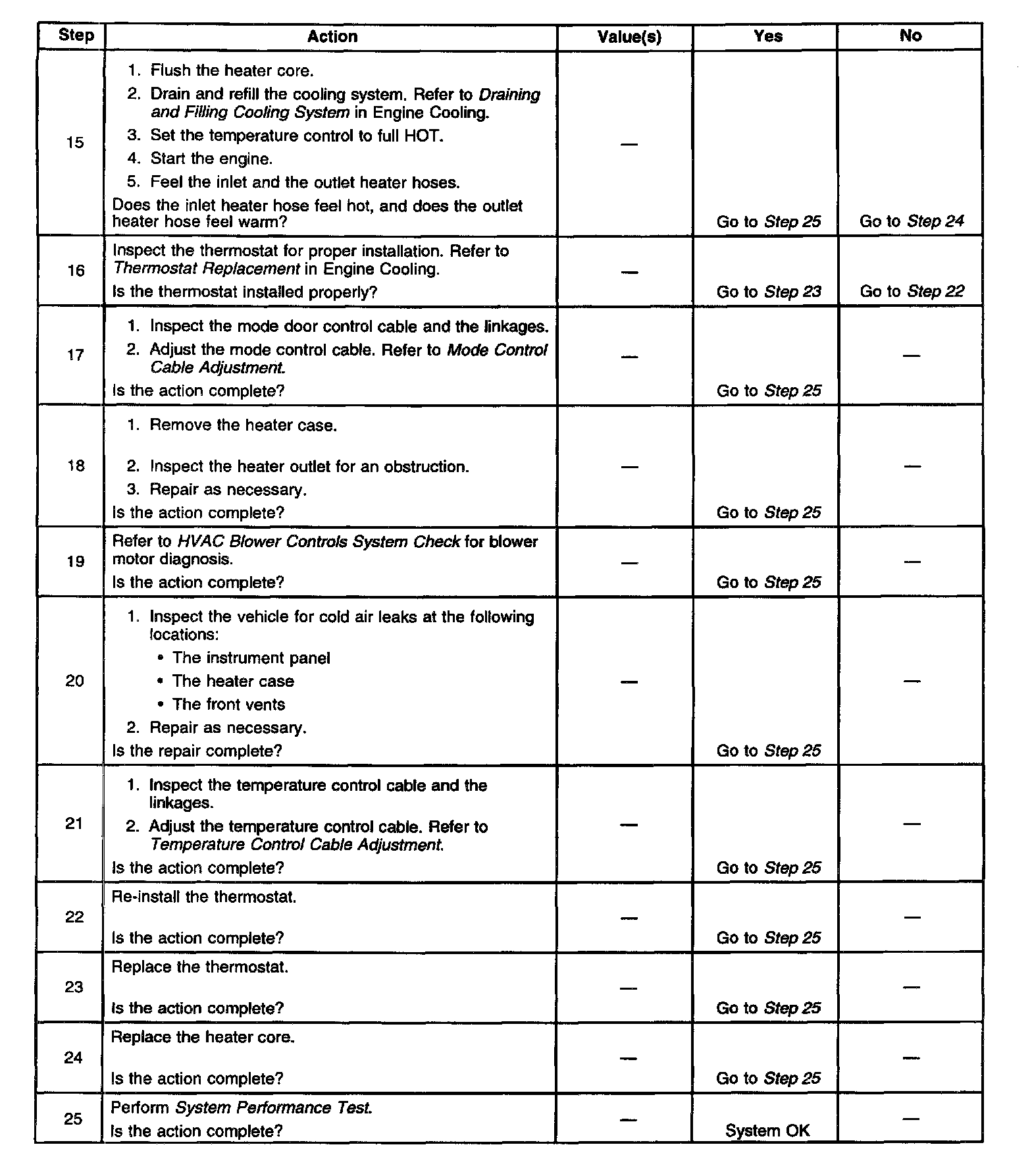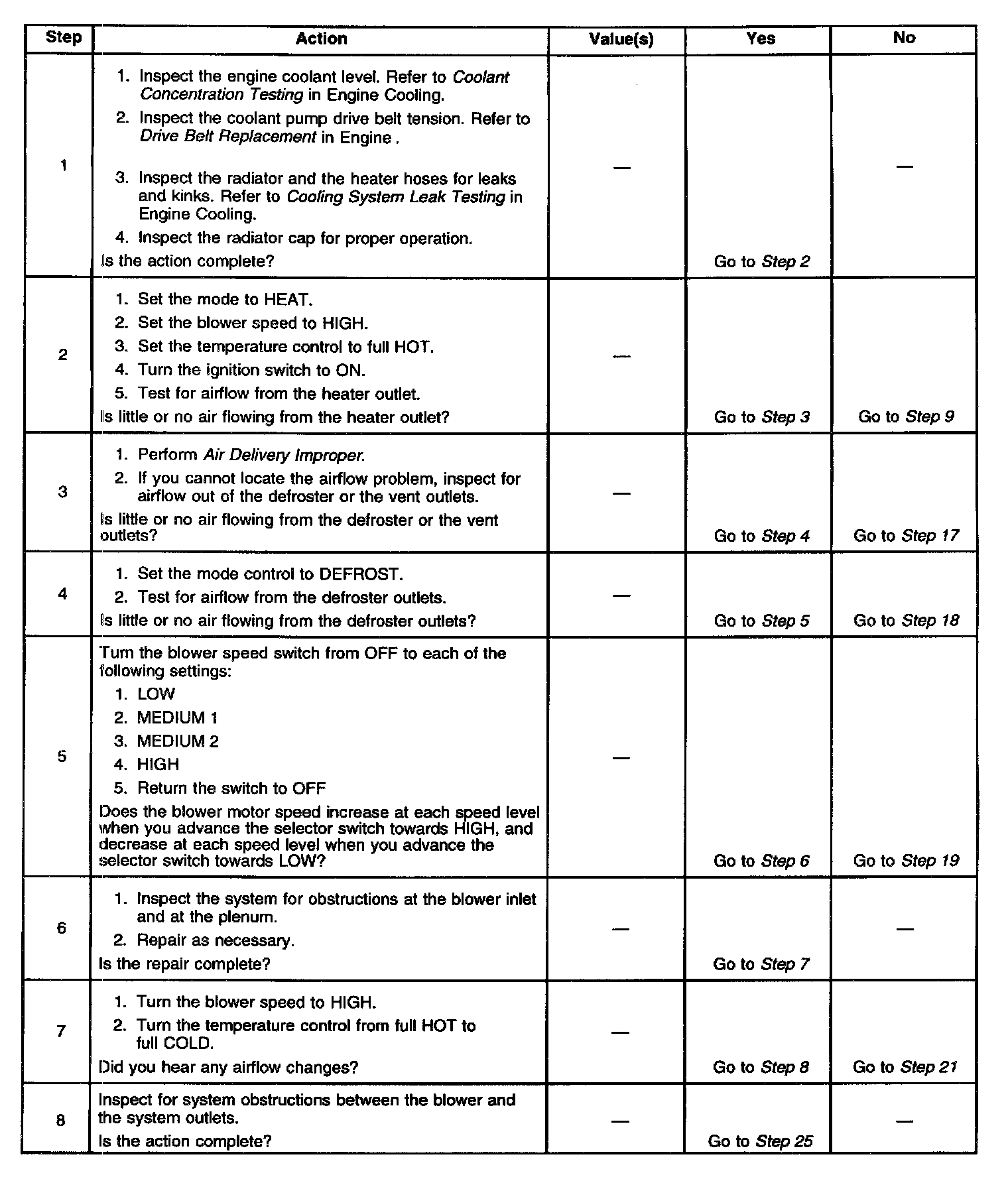 Symptoms - HVAC System - Manual