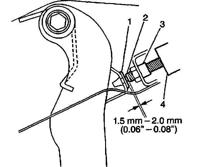 5.2. Adjust the switch position so that the switch plunger is pressed by the brake pedal contact plate. Ensure that the threaded portion (2) of the switch (4) is within 1.5 - 2.0 mm (0.06 - 0.08 inch) from the pedal contact plate.