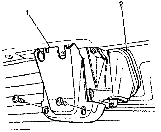 2. Install the stoplamp housing (1) to the stoplamp assembly (2). Secure the housing with the 2 retaining screws.