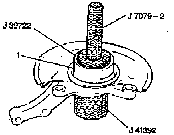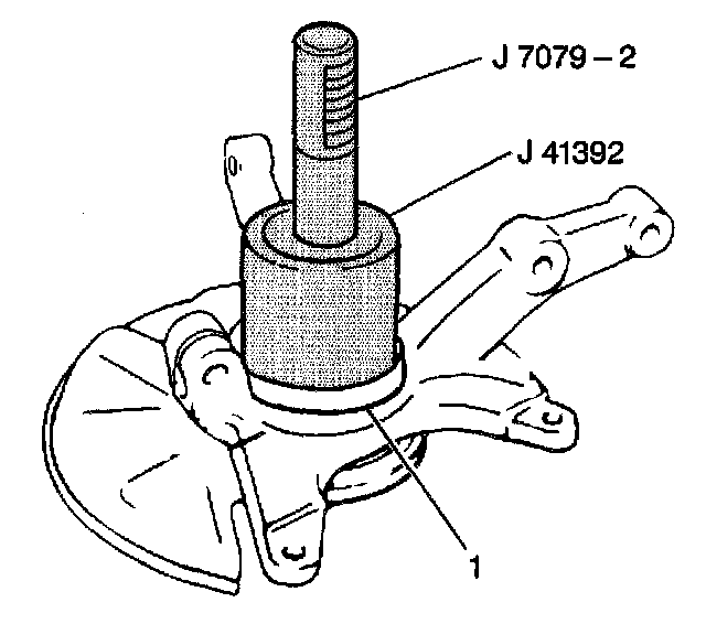8. Remove the bearing assembly from the knuckle. Use the J 7079-2 and the J 41391.
