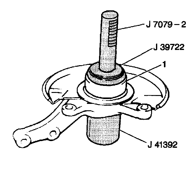 2. Install the bearing assembly into the knuckle. Use the J 39722 and the J 7079-2.
