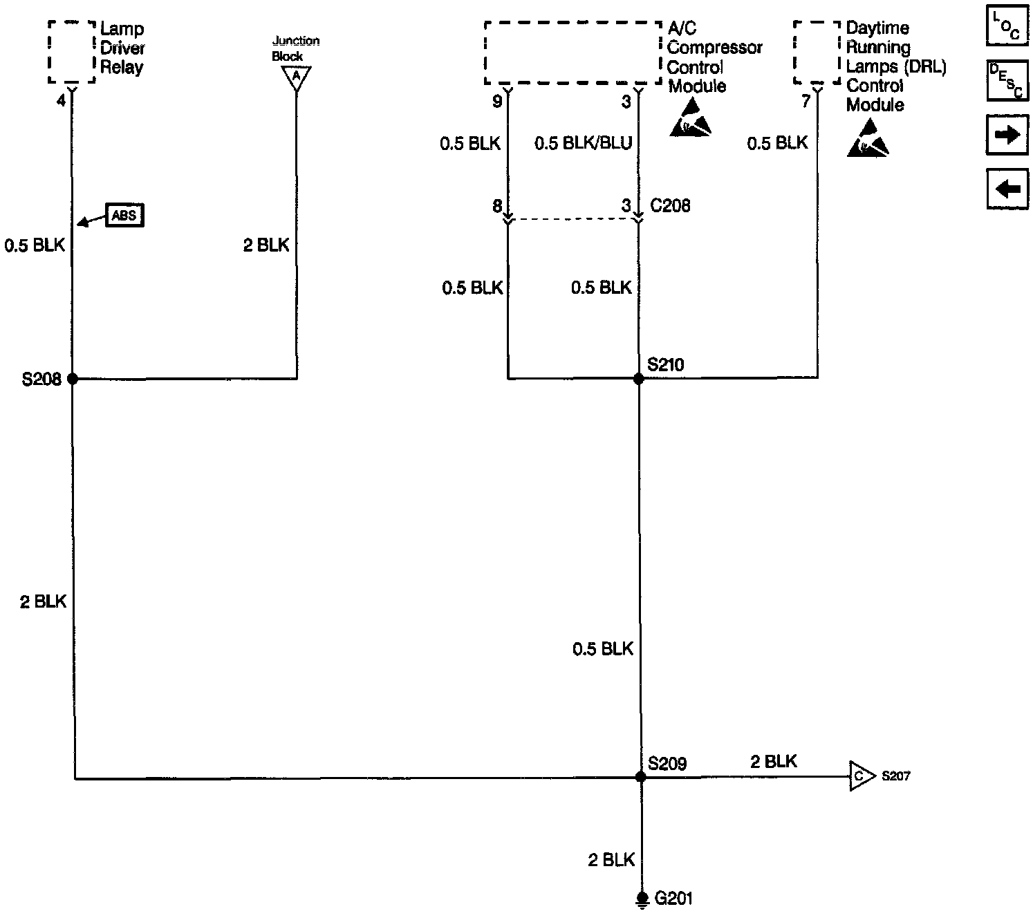 Ground Distribution Schematics: G102, G201, G202, And G203 And Lamp Driver Relay: